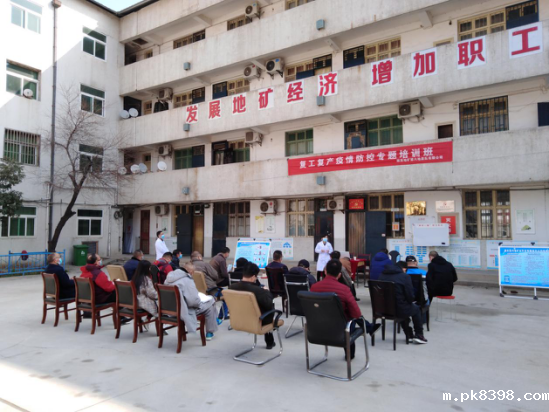 为进一步做好复工复产和新冠肺炎疫情防控工作,提升疫情防控期间安全风险管控和复工复产前隐患排查治理能力,提高安全生产管理人员和从业人员牢固树立“培训不到位是重大安全隐患”的意识,健全落实安全培训责任制,熟悉掌握新型冠状病毒感染的肺炎防控知识,加强复工复产和疫情防控相关知识和技能培训,按照陕西省应急管理厅《关于做好新型冠状病毒疫情防控期间安全培训工作的通知》(陕应急【2020】22号)和陕西地矿集团有限公司《关于做好复工复产的通知》(陕地发【2020】9号)以及我公司【2020】8号文件要求,落实公司“疫情防控复工复产统筹推进会”第四次会议决定,进一步规范公司疫情防控复工复产工作,按照公司安委会和疫情防控工作领导小组安排,于2月26日对我公司全体员工进行了疫情防控和复工复产安全知识线上培训,3月5日邀请陕西地矿医院医生专家赴潼关生产一线举办了以露天授课方式的复工复产疫情防控知识专题培训班。